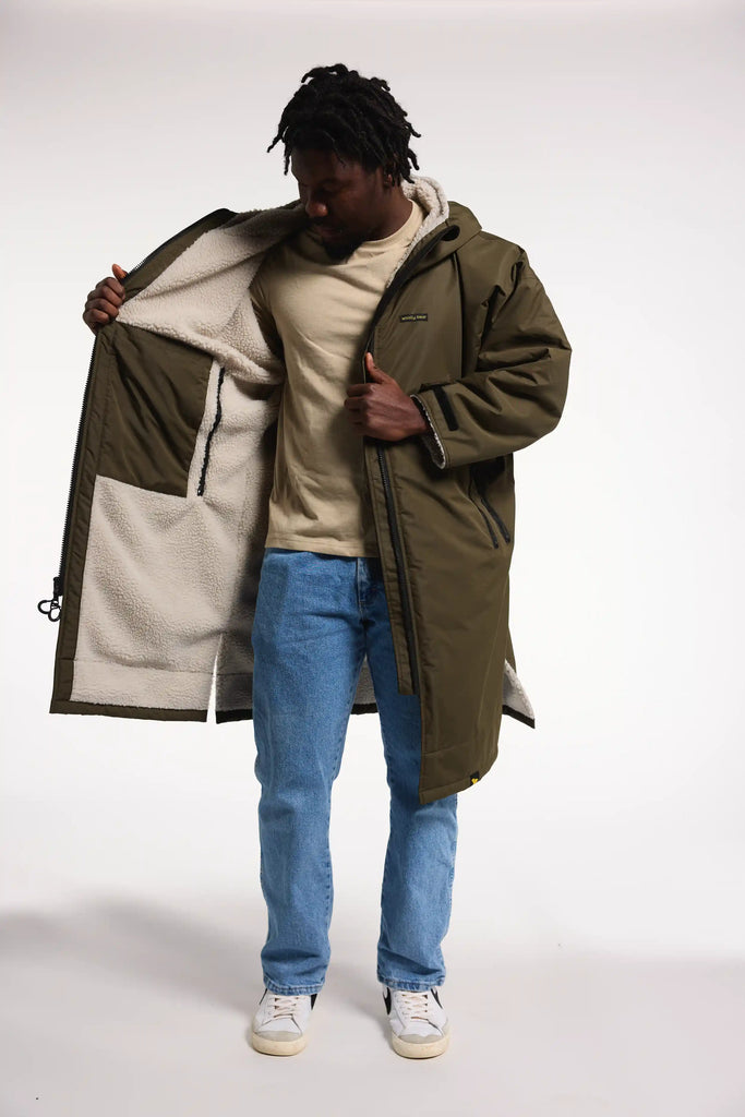 From the slopes to the surf, from the tailgate to the commute, Woolly Bear coats are built for oversized comfort. Woolly Bear is built to keep you absurdly comfortable and reliably dry. Woolly Bear's oversized design features velcro cinches with reach through pockets for comfort built for the real world.